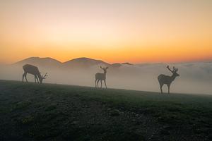 Elk grazing before sunrise at 12,000 feet in Rocky Mountain National Park, Colorado.